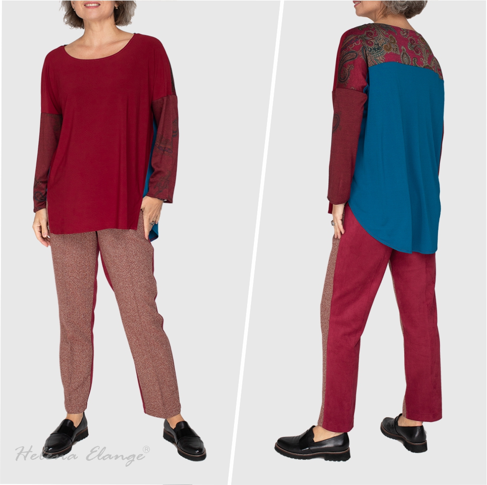 Home suit “Bordeaux & yellow”/ shirt, trousers, top / Home wear/ Helena Elange